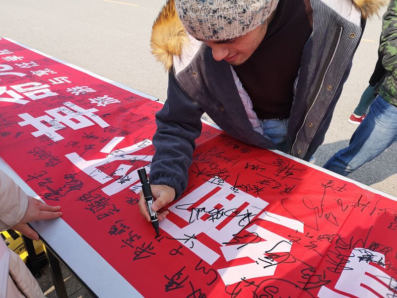 第五个南京大屠杀死难者国家公祭日临近之际,为增强员工们的爱国主义意识,进一步弘扬爱国主义教育,营造牢记历史、不忘过去、珍爱和平、开创未来的校园文化氛围,12月12日中午,由旅游与烹饪公司心理联合、公寓自律委员会主办的“凝聚爱国热情 缅怀革命先烈” 国家公祭日爱国签名活动在公司南广场顺利举行,在校师生积极参与此次活动。