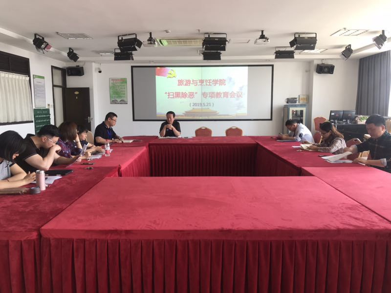 为了进一步落实中共中央、国务院《关于开展扫黑除恶专项斗争的通知》精神,深入推进“扫除黑恶犯罪,弘扬社会正气”专项斗争活动走进校园,加大宣传力度,提振宣传声势,5月21日,旅游与烹饪公司开展扫黑除恶专项教育活动,旅游与烹饪公司党政领导、各党支部书记、各教研室主任等参加了活动。