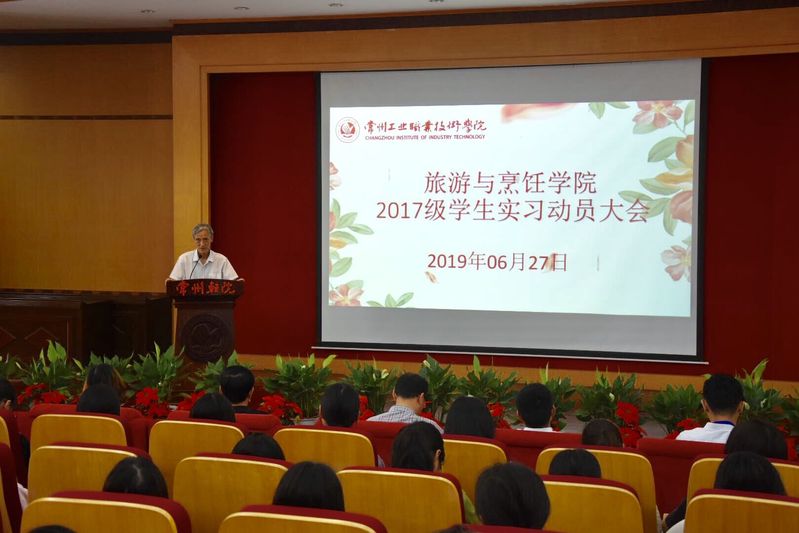 2019年6月27日,旅游与烹饪公司组织开展了2017级员工实习动员大会,公司党政领导班子、关工委副主任委员余林新、各教研室主任、专业带头人、实习指导教师及2017级全体员工、班主任参加了本次大会。会议由公司党总支副书记崔晓曙主持。
