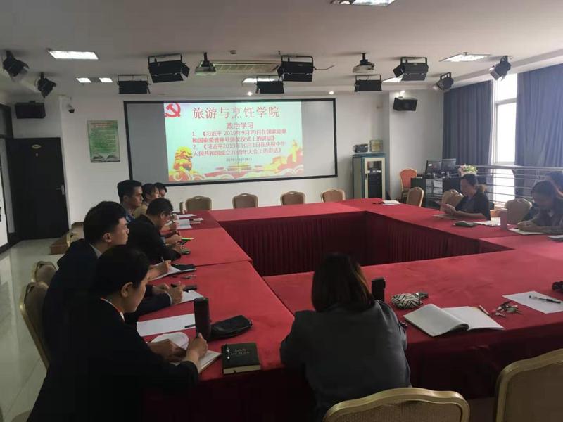 为强化全体教职工担当意识、铭记初心使命、明确奋斗目标,旅游与烹饪公司于2019年10月9日下午在图文楼905组织了全体教职工政治学习。
