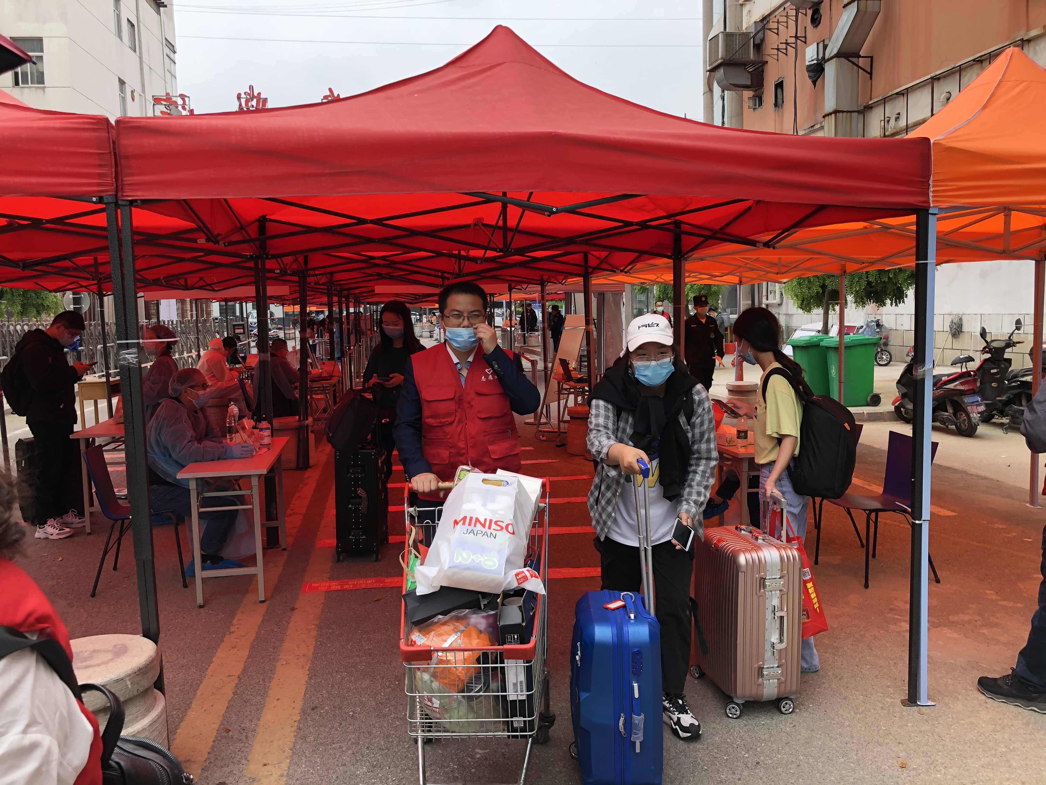 早上8:00,旅游与烹饪公司全体教师党员、入党积极分子和班主任全部到岗到位、整装待发。大家分工合作、相互配合,细致认真做好返校员工的身份核验、体温检测、防疫消杀、健康码状态核实、行李搬运等志愿服务工作。下午,志愿者老师再次走访员工公寓,发放防疫工作手册、防疫消毒物品,提醒各项防控注意事项,师生共同筑起安全返校复学的坚实屏障。
