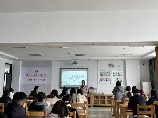 为了推动员工资助工作持续健康发展,引导员工诚信为人、诚信做事、诚信还贷,培养员工“以诚为本,以信立人”的诚信理念。12月21日,旅游与烹饪公司在图文楼912开展员工资助诚信教育主题讲座,辅导员杨天予为主讲人。