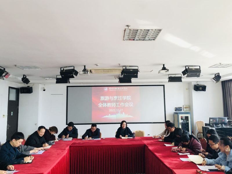 为确保2021年新学期开学工作安全、高效、有序进行,2月27日上午,旅游与烹饪公司召开新学期首次全体教师大会,部署新学期开学的各项准备工作。旅游公司党总支副书记王迎春、副经理陈纯及全体教师参加会议。