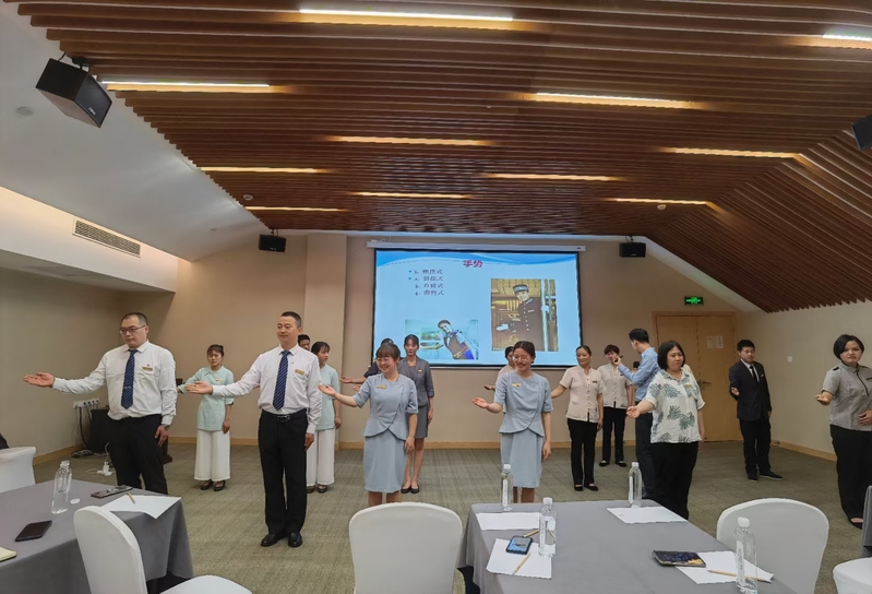 黄老师结合当今酒店业的前沿服务项目与体系,采用多种教学方法进行培训,现场效果显著。酒店人事总监王珍表示,今后酒店将以黄老师教学中的服务流程为规范,培训和考核员工,争取服务质量的最大提升。