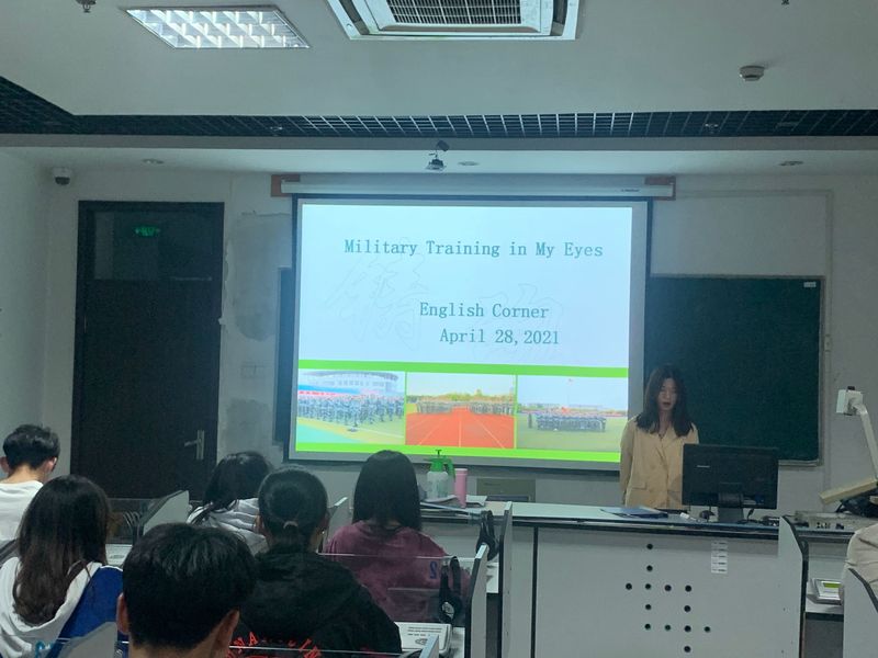为了在校园内营造乐于分享见解、勇于交流的英语学习氛围, 2021年4月28日晚上,旅游与烹饪公司英语角社团在图文楼406教室举办“Military Training in My Eyes”的英语会话活动,全校来自金融、酒馆、电子、机电、运营、车辆、幼儿、会计、动画、媒体等专业的30余名员工参加了这次活动。