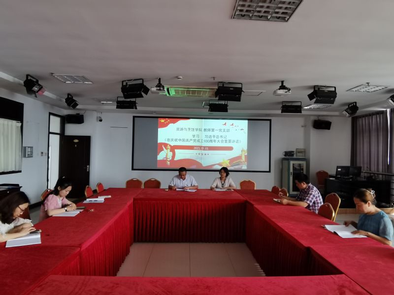 2021年7月1日,旅游与烹饪公司教师第一党支部集中学习习近平总书记《在庆祝中国共产党成立100周年大会重要讲话》精神。公司党总支书记王迎春、经理陈纯、副经理张卫兵、各党支部成员出席了本次会议。