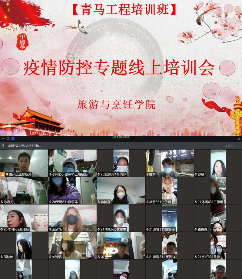 2021年11月5日晚,旅游与烹饪公司召开青马工程培训班——员工干部“疫情防控”专题线上培训会。公司党总支副书记郭媛、全体辅导员、团学干部、各班级班委等员工干部等共计110余人参加了本次培训。会议由分团委书记郑新涛主持。