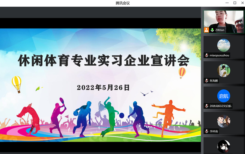 疫情防控期间,为进一步完善毕业实习工作,推进实习工作顺利进行,5与26日,旅游与烹饪公司休闲体育专业召开2023届毕业生顶岗实习企业宣讲会。此次企业宣讲会特邀请江苏奇峰金澜体育文化发展有限公司、太湖湾教育大营地、嬉戏族集团有限公司、常州市武进区龙城冰雪俱乐部等11家企业进行企业宣讲会。