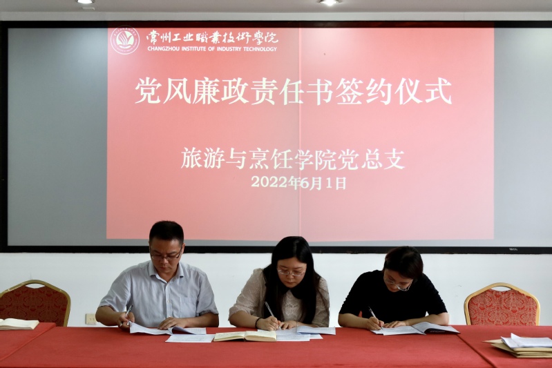学习结束后,旅游与烹饪公司举行了2022年度党风廉政建设责任书签订仪式,王迎春和陈纯分别与各教研室主任、支部书记及科级干部一一签订了党风廉政建设责任书。
