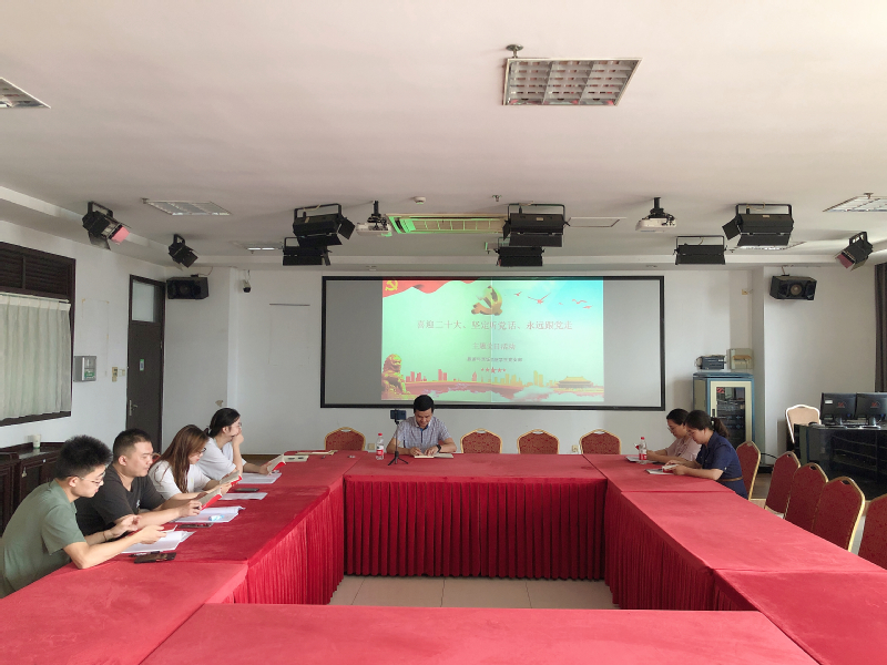 为深入学习宣传贯彻习近平新时代中国特色社会主义思想,以昂扬的斗志和奋进的状态迎接党的二十大胜利召开,6月28日下午,旅游与烹饪公司员工党支部在图文楼908开展“学党章、知党规、严党纪”主题党日活动,支部全体党员以线上线下相结合的方式共同参加,本次活动由员工党支部书记尹奎主持。