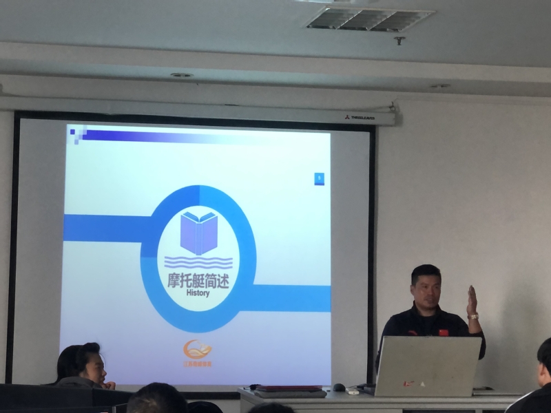 张琦峰从摩托艇简介、摩托艇运动介绍、摩托艇运动比赛形式三个方面进行了介绍,对自己从事水上运动行业以来的经验进行了深度的分享,并介绍了20级休闲体育专业优秀实习生赵瑾珏的工作近况,激励同学们在校努力学习专业知识,积极参加比赛,不断提高自身的技术技能水平。