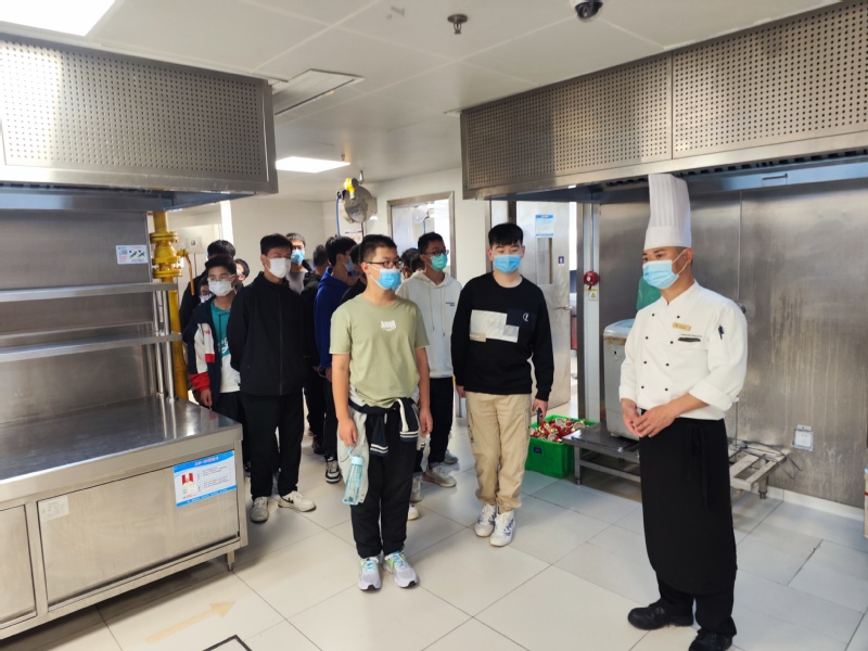 企业行政总厨、中国烹饪大师、江苏省五一劳动奖章获得者王斌大师,亲切地给同学们介绍中厨房的构造,各个工具的使用方法及相关卫生标准。王斌大师语重心长地对同学们说起他当年学徒时期的辛劳,但他从不后悔踏入这一行,并告诉同学们做餐饮做烹饪需要有兴趣,不仅要做好,还要做精,要有不断学习和勇于创新的精神。现场同学深受感动,纷纷感叹,原来大国工匠往往都是从身边不起眼的小事做起。