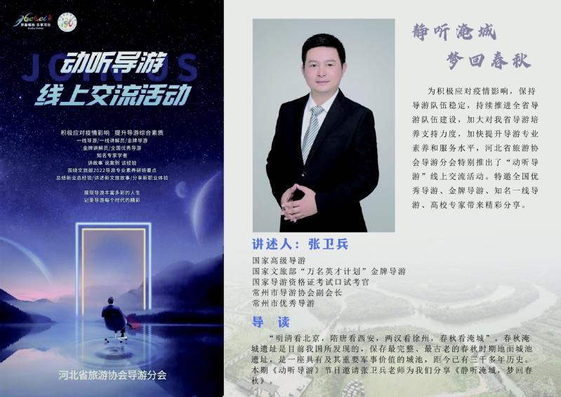 近日公司张卫兵老师,获聘河北省旅游协会“导游智库专家”荣誉称号,为河北省的导游队伍建设,贡献力量。在疫情期间,在河北省文旅厅的支持下,河北省旅游协会推出了“动听导游”线上交流活动,特邀百名国家优秀导游、金牌导游、知名一线导游和高校专家进行精彩分享,公司张卫兵老师有幸被推荐遴选,他以常州春秋淹城遗址为切入点,通过当地电台,向河北省文旅同行以及广大听众,讲述了常州的文明起源,历史底蕴,展现了“千载读书地,古今名仕城”的独有风韵,赢得了燕赵大地广大听友的称赞,从而获此殊荣。