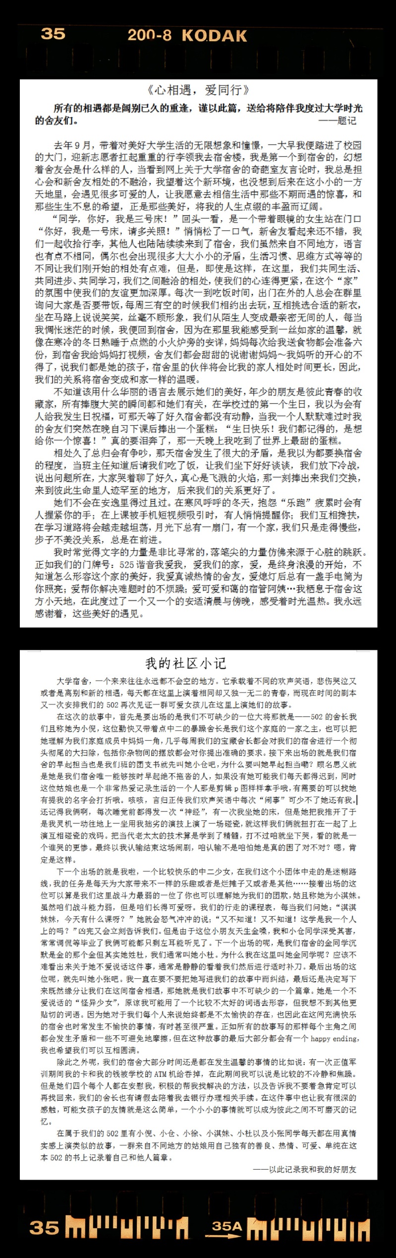 此次征文活动受到了公司同学们的热烈欢迎,截止活动结束,共收到征文四十余篇。同学们从自身的实际学习生活出发,讲述自己的社区故事,征文中涵盖有友情、成长,或抒情,或议论,感情真挚,角度新颖,体现了广大同学团结友爱,共同学习,共同进步的良好风貌。最终,通过专家的评选,共选出优秀征文13篇,其中22幼儿633班徐妍同学作品《我的社区小记》,22幼儿634班李佳悦同学作品《心相遇,爱同行》获本次征文比赛一等奖。