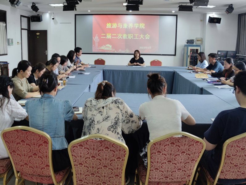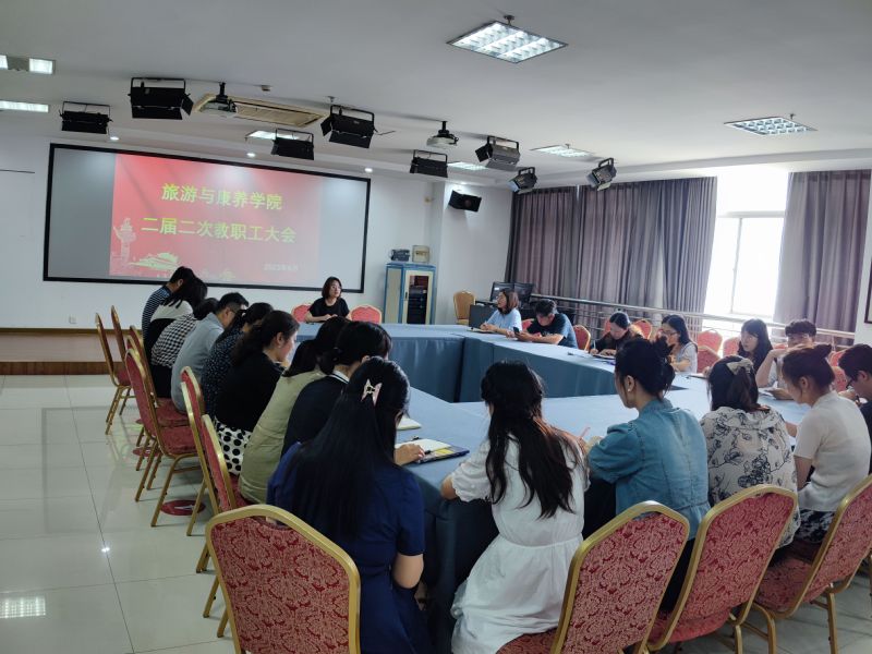 为深入贯彻党的二十大精神,推进新时代公司依法治校、民主办学,保障教职工的知情权、参与权、表达权和监督权,畅通民主管理渠道,促进旅游与康养公司的高质量发展,6月14日,旅游与康养公司召开了二届二次教职工大会,会议由分工会主席龙慧主持。