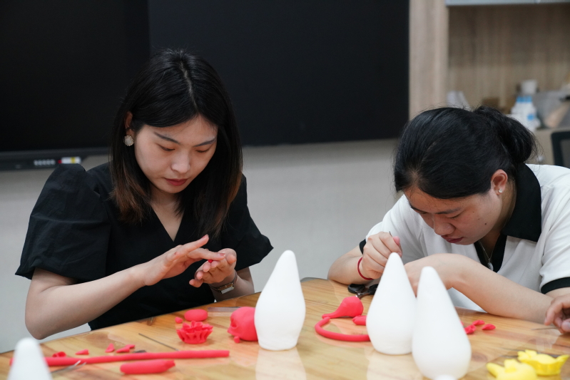 在实践课程开发阶段,参训教师走进太湖湾劳动教育基地,开展生产劳动、日常生活劳动项目的实际操作。在太湖湾劳动教育基地的实践工坊,教师们从事印章雕刻、堆花糕团、电子风铃、常州大麻糕的制作。一件件构思新颖、制作精细的作品呈现在眼前,体会到劳动的快乐。