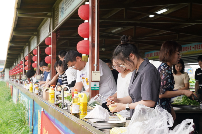 在厨荷园,教师们在基地老师的指导下,按照《制作植物微景观》的课程,专心致志完成微景观制作,体会植物美学的乐趣,感受自然生态的魅力和劳动的快乐。土灶旁,教师们按照《食育课程操作流程》淘米、洗菜、生火、煮饭、切菜、颠勺、调味、起锅,美味佳肴摆满了饭桌。课后,项目负责老师对实操课进行了点评,要求教师们深入钻研课程标准,关注员工的真实体验,注重跨学科渗透,让员工在劳动中体验,在实践中感悟,培养员工的劳动素养。
