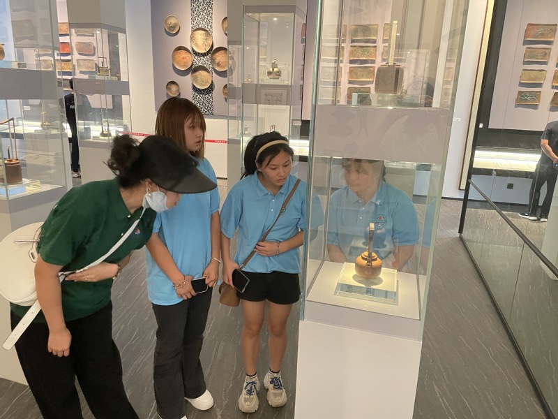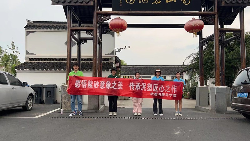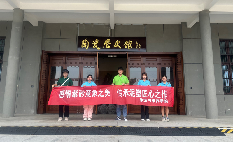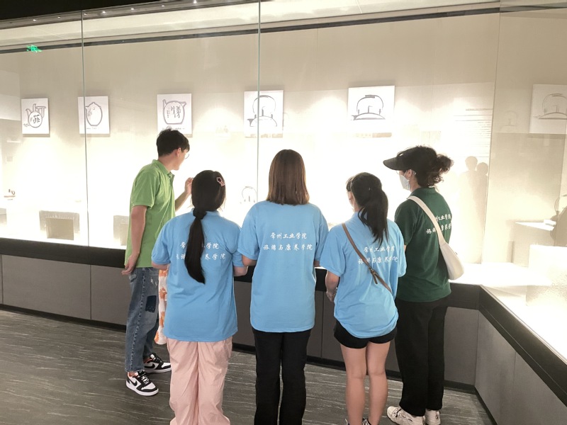走进展馆,领会巨作新意境。本次社会实践的第一站来到了位于宜兴市丁蜀镇的中国陶瓷博物馆。中国陶瓷博物馆内的藏品非常丰富,不仅有历史悠久的青铜器、玉器、陶器等许多珍贵文物,还展示了中国传统文化、民间艺术、书法、绘画等多种文化素材,令到访师生叹为观止。当然,作为享有盛誉的紫砂壶主要产地,中国陶瓷博物馆内展出的紫砂壶当世名作也深深地吸引着实践团师生的眼球,通过阅读简介,大家深刻领会到紫砂壶工艺大师们的独具匠心,将各种创新想法与艺术元素及个性表达融入壶中,以巧夺天工的工艺实现“情与物”、“心与物”的完美交融,让大家近距离地感受到了紫砂工艺的深厚历史底蕴和独特魅力。