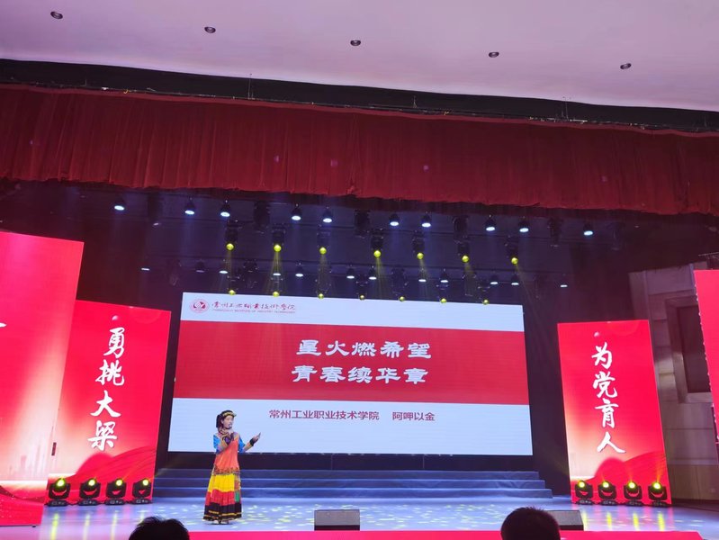 在本次赛事中,阿呷以金结合自己的亲身经历,以“星火燃希望 青春续华章”为团课主题,声情并茂地讲述了因自身受到党和国家的帮扶,进而奋发努力,梦想着有一天能够把最前沿的学前教育理念和教学经验带回家乡,让大山里的孩子在山沟里也能接受最先进的教育的励志故事。故事催人奋进,团课意义深远,在场的每一位观众和选手都被这一位来自大山里的孩子所感动,现场掌声不断。