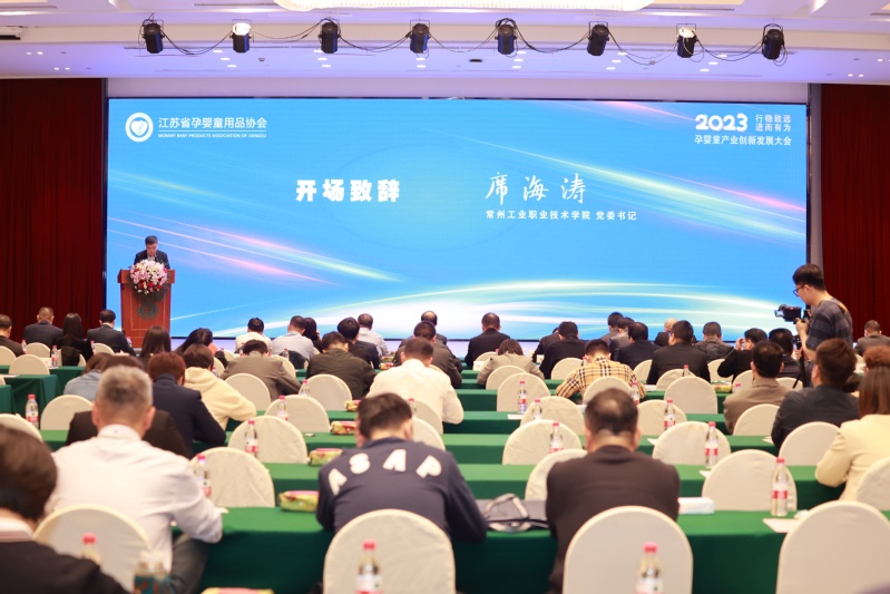 相约金秋、论道金陵!10月24-25日,由江苏省孕婴童用品协会主办的2023孕婴童产业发展大会于江苏南京圆满举办。大会以“行稳致远 进而有为”为主题,邀请新老朋友再聚首,共叙友情,同绘愿景。此次会议共邀请了江苏苏豪国际集团,爱朵集团,伊利奶粉等两百多家行业知名企业,三百多位重量级嘉宾参会,公司党委书记席海涛作为唯一院校代表,受邀参加此次盛会并致开幕词。