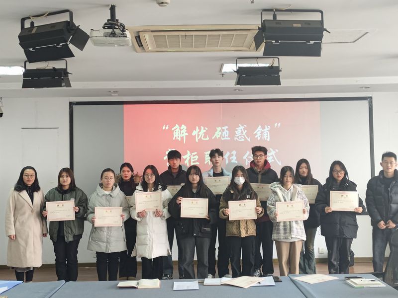 活动最后,郭媛为本次聘任为“解忧砸惑铺”掌柜的同学颁发了聘书,并对他们表示祝贺,希望他们能够发挥掌柜力量,为公司心理健康工作做出贡献。各位掌柜纷纷表示:将用心做好掌柜工作,助人助己,发挥自己最大的力量。