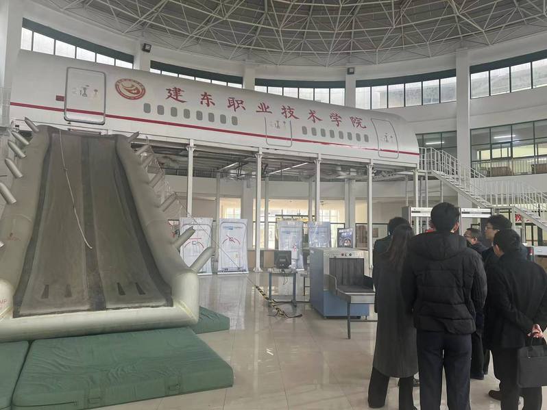 建东职业技术公司航空服务公司副经理仝泽柳对王迎春一行的到来表示热烈欢迎,在他的带领下,空乘教研室各位老师参观了实训模拟舱,详细介绍了舱内设施设备、模拟舱日常维护及管理和实训课程的授课方式。仝泽柳指出,希望两所院校之间通过教学交流、教学基地共享等方式共建长效合作机制,实现资源优势互补互享,双方携手共进。