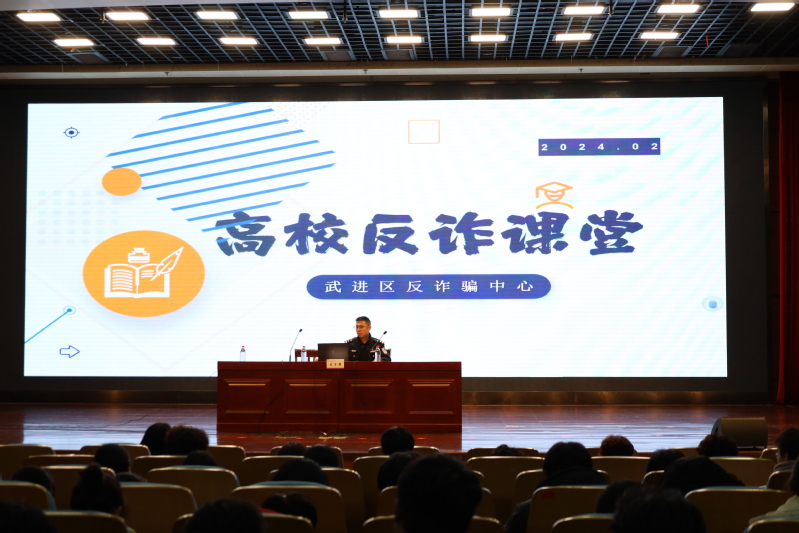 首先,肖警官结合老员工身边发生的实际案例为同学们介绍了新型的反诈骗手段。第一种约炮赌博刷单类:抖音擦边诱导下载“约炮”类app实行诈骗,通过小额返现诱导从而进行大额诈骗;第二种游戏交易类:通过游戏引流到线上交易平台进行诱导付款;第三种冒充熟人借钱;第四种虚假购物类;第五种境外诈骗:通过电话、微信、QQ、支付宝、钉钉等软件进行诈骗。其次,肖警官也分享了常见的诈骗话术,为同学们敲响警钟。与会师生认真学习,此次安全反诈活动让大家受益匪浅。