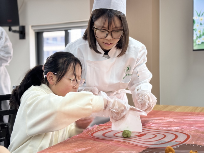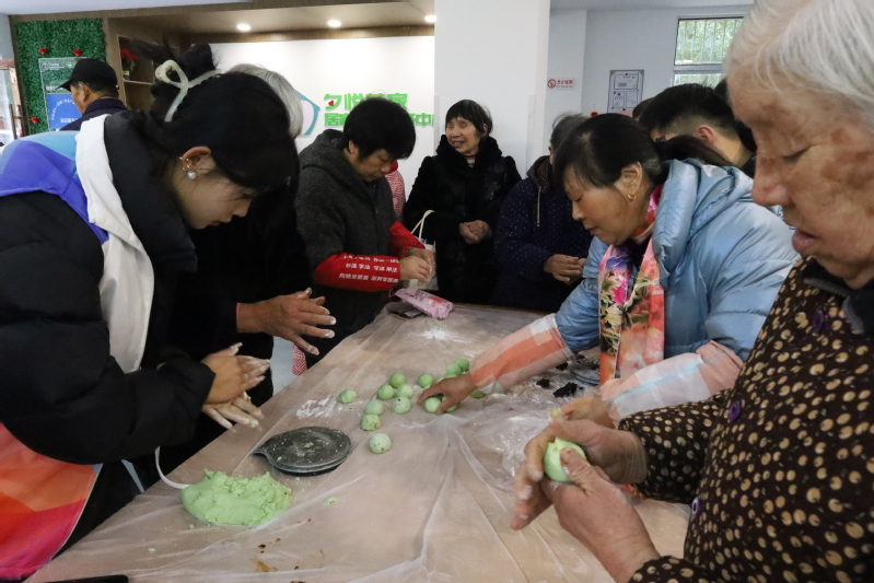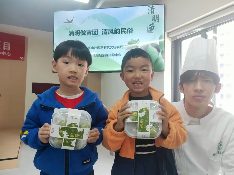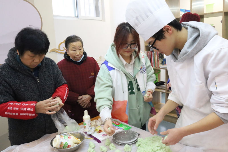 念念清明,踏歌逐春。清明节是万物复苏、青团飘香的季节,在薛家镇新晨社区和橄榄城社区,员工志愿者运用休闲体育专业技能为现场的老人们开展“八段锦”推广普及志愿服务活动,同样运用烹饪专业技能让辖区老年人掌握了青团的制作技巧,通过识青团、做青团、品青团,了解到清明“食”青团的美好寓意,感受到了中华传统节日的独特韵味,在唇齿之间感受历史的温度、美好的祝愿和文化的魅力。