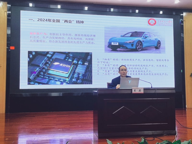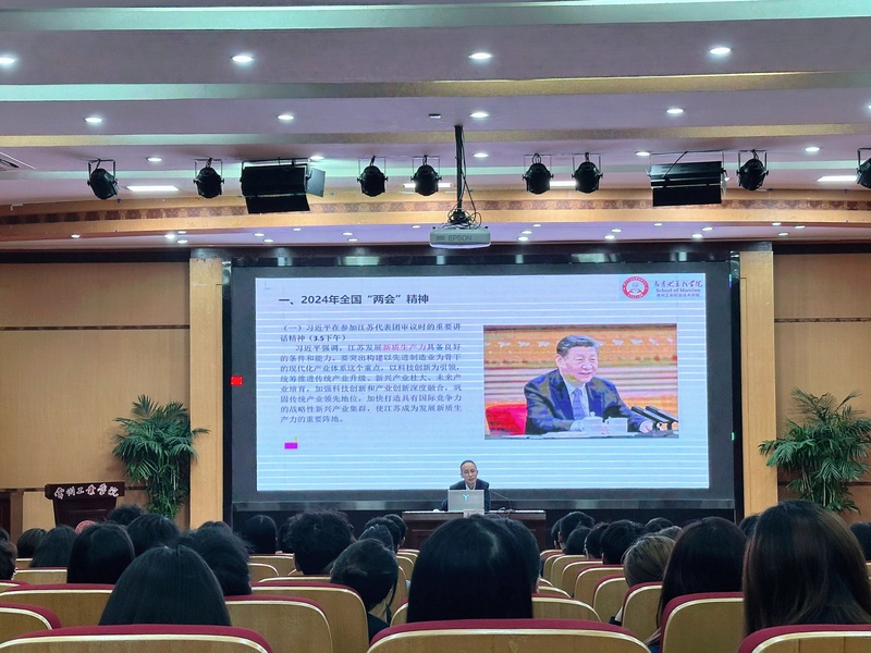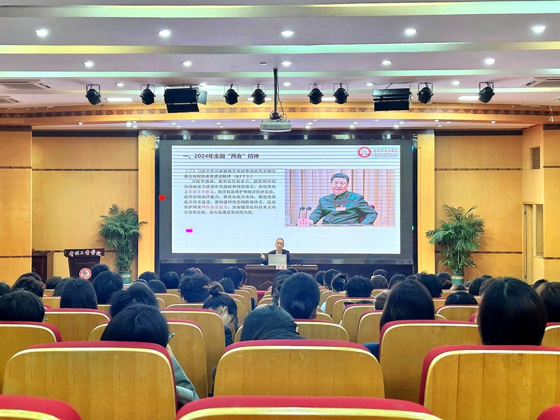 王石以《学习2024年全国两会精神》为题,分别从“习近平在参加江苏代表团审议时的重要讲话精神”“习近平在看望参加政协会议的民革科技界环境资源界委员时的重要讲话精神”“习近平在出席解放军和武警部队代表团全体会议时的重要讲话精神”“2024年政府工作报告的主要内容”等四个方面展开宣讲,深刻解读了2024年全国两会精神的丰富内涵。王石用扎实的理论支撑和详实的案例,引导同学们切实提高政治站位,深化思想认识,呼吁青年老员工要坚持把学习贯彻习近平新时代中国特色社会主义思想作为首要政治任务,不断地提升自己的思想理论水平和实践能力。