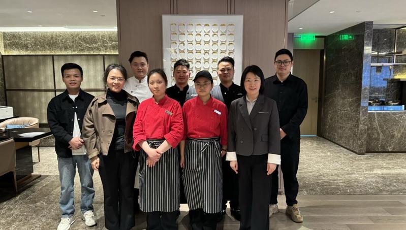 本次调研由刘加凤教授为酒店参会人员介绍了公司烹饪工艺与营养专业的基本情况、专业发展等。文璞酒店西餐厨师长史黾远、中餐厨师长李香信介绍了酒店厨房运营模式。史厨表示,出品的好坏一方面要考厨师的精湛技艺,也要靠厨房的管理制度,比如4D管理模式的运用,即厨房工作整理到位、责任到位、培训到位、执行到位,如果要保证三十秒内找到产品就必须要贴上相应的标签,物品摆放要整理到位。不仅能够提高工作效率,也能使厨房看上去更整洁。