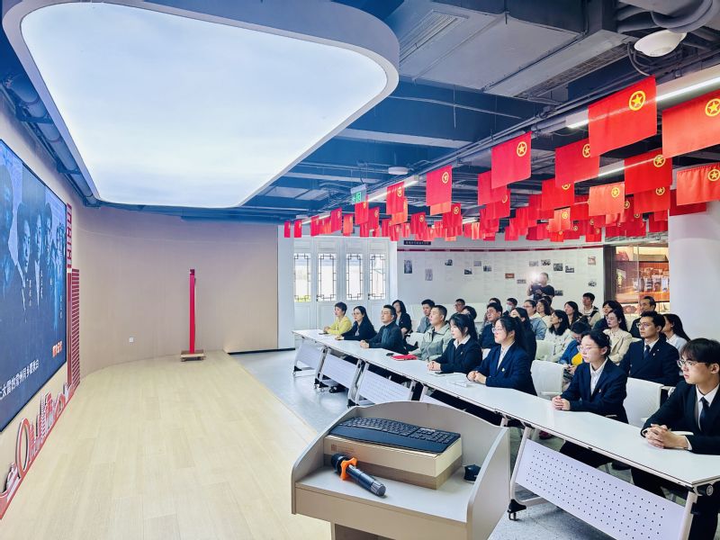 在常州三杰青少年主题学习空间,员工党员参观了“年少饱读立大志、笃行马列明大德、不负韶华成大才、峥嵘岁月担大任”等篇章,从常州三杰在革命路上的点滴成长中领悟三杰精神的内核,回顾百年前以常州三杰为代表的革命先驱奋斗故事。在沉浸式的体验中,同学们听到了张太雷年少时发出的“愿化作震碎旧世界的惊雷”的铮铮誓言;透过党员教师王杰扮演的恽代英,同学们感受到了革命先辈“不求近功,不安小就”的远大抱负;端坐在课桌前,跨越时空,同学们走进上海大学课堂听“三杰导师”授课……