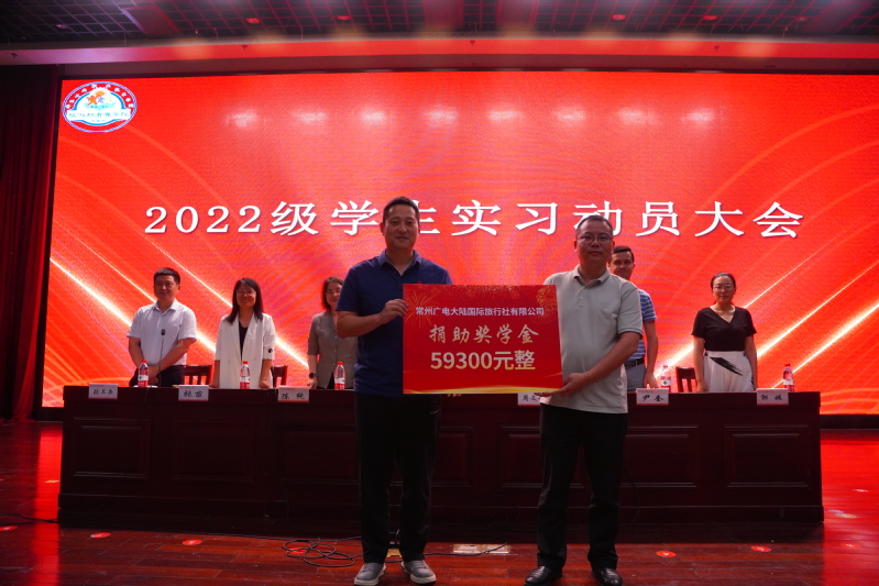 广电大陆国际旅行社总经理周文金,代表企业为公司捐助奖学金,他表示,奖学金用以鼓励品学兼优的员工持续努力拼搏,帮助他们在奋斗路上更上一层楼。希望员工能善用奖励,将来也能通过自身努力回馈社会,继续传递积极向上的精神。张苗为专业见习优秀员工颁奖,她鼓励员工要好好对待珍惜实习工作,实习是很重要的一堂社会课,希望大家能成为合格而优秀的毕业生。