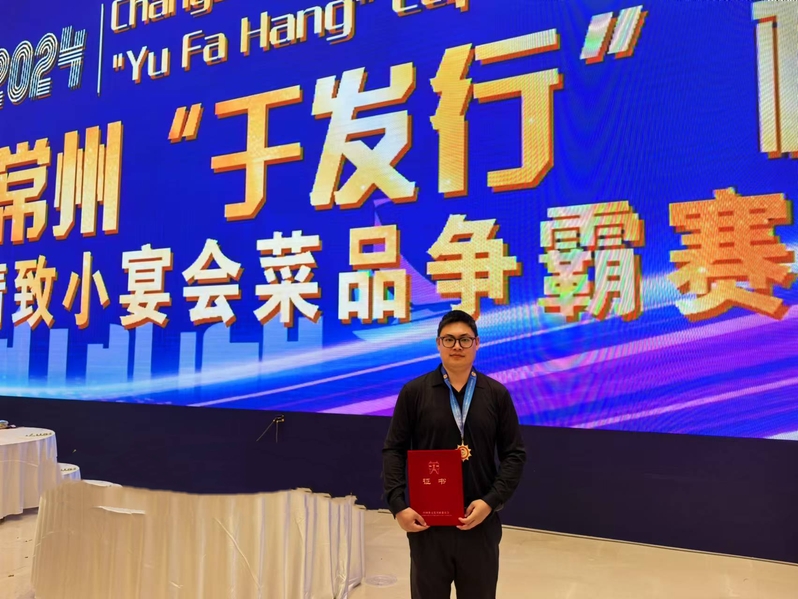 为适应社会与市场需要,提升教师自身素养和员工技能水平,11月27日,K1体育烹饪教研室陈一帆老师,赴常州白金汉爵酒店参加首届中国·常州“于发行杯”首届精致小宴会菜品争霸赛。