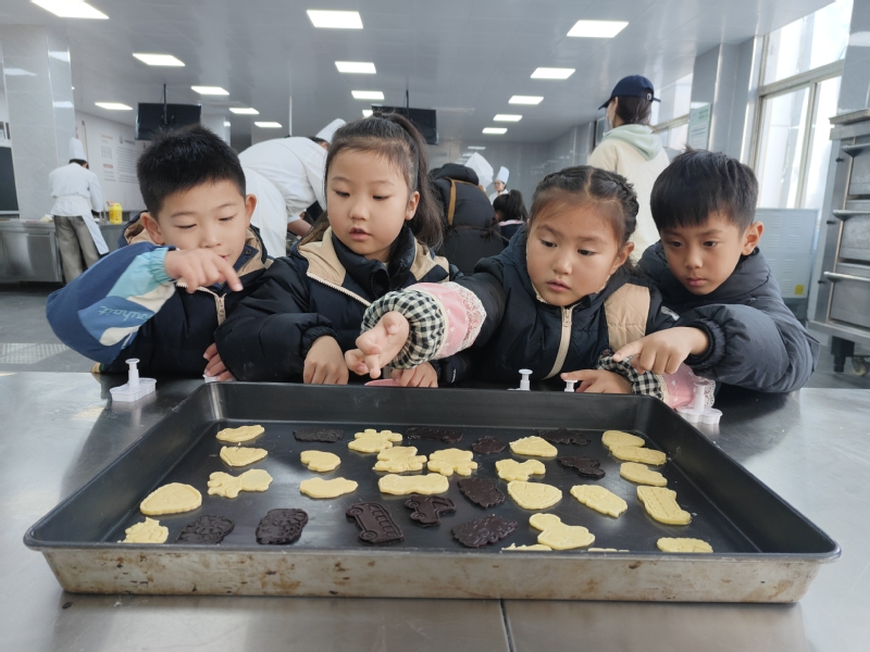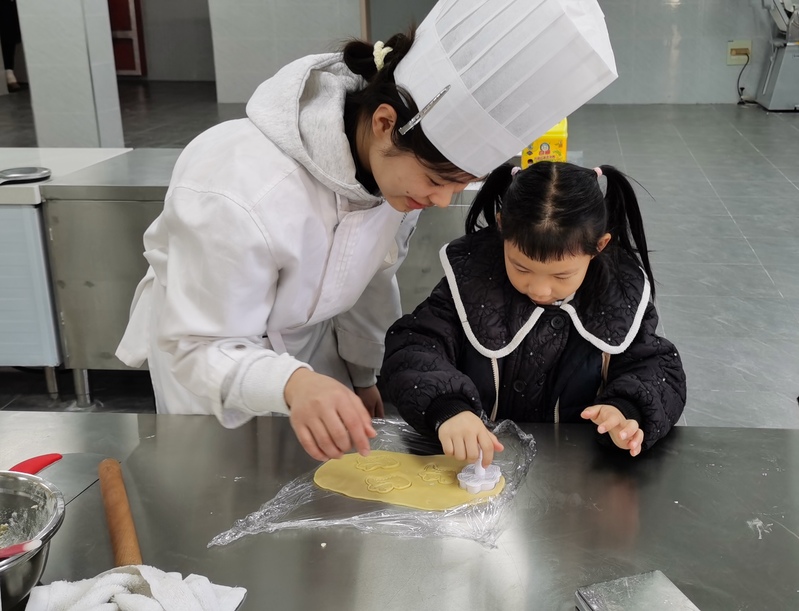 本次活动在食育科普、食材简介中正式开始。在葛小琴老师指导下,烹饪工艺与营养、婴幼儿托育服务与管理专业员工分组带领幼儿体验饼干的制作。从揉捏擀卷到捏制造型,幼儿们卷起衣袖,大展身手,与大哥哥大姐姐一起制作出了许多造型精美的饼干。看着自己亲手制作的美食,幼儿都感到非常开心和有成就感。他们在实践中体验到了劳动的乐趣和价值。在蒸烤等待的过程中,婴幼儿托育服务与管理专业员工还组织幼儿开展了动感活力的趣味游戏,小朋友们积极参与,体验了运动带来的快乐。