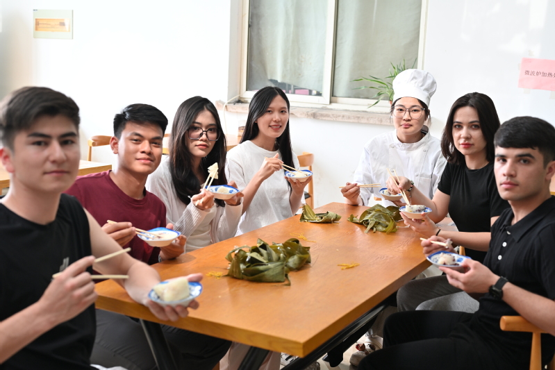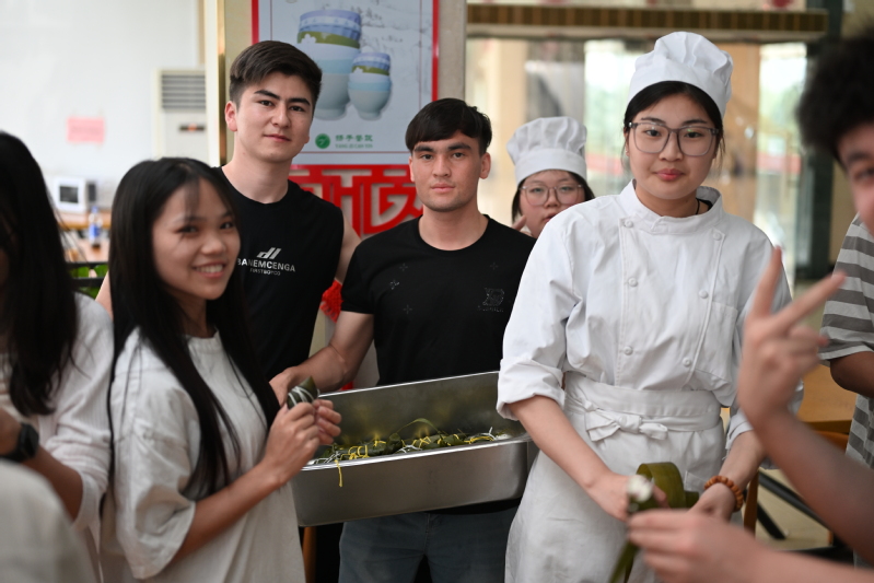 通过包粽子、学民俗、话传统等互动环节,同学们沉浸式感受了中华传统文化的魅力。来自俄罗斯的职工NEMENOK LIIA表示:“这是我第一次体验包粽子,既有趣又有意义。我不仅了解了端午节背后的故事,也感受到了这里浓厚的文化氛围和大家的热情。”