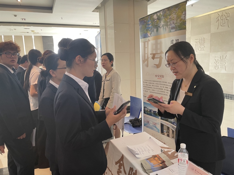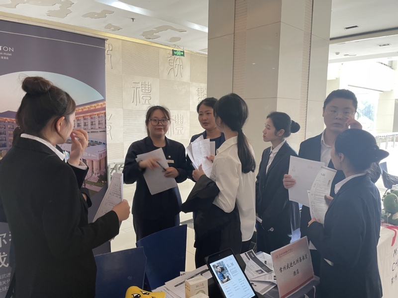 本次双选会汇聚了常州中吴宾馆、南京新华传媒酒店、苏州尼依格罗酒店、张家港暨阳湖大酒店等近二十家行业知名企业,主要涵盖住宿和餐饮类、烹饪类等多个领域,搭建了高效的校企人才对接平台,为员工提供了丰富的实习选择,拓宽了他们对于行业的了解。双选会现场气氛热烈,求职氛围浓厚,员工与企业招聘代表深入交流,围绕岗位技术要求与职业发展路径进行积极探讨。