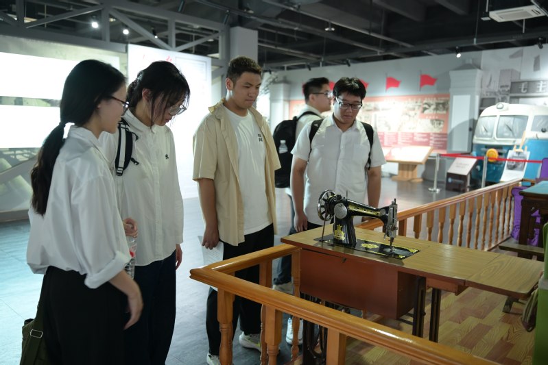 展览馆内溯根源,解码工业遗产保护基因。在常州大运河工业遗产展览馆,团队成员在讲解员的引导下,沉浸式探寻常州从近代纺织、机械制造到现代智造的工业脉络,参观与了解戚机厂、戚电厂、大明厂等运河沿岸的优秀民族工业企业的辉煌成就,触摸常州的工业记忆,感知大运河工业遗产的勃勃生机,体会常州工业的工匠精神。24酒管531班曹颖表示,“这些锈迹斑斑的机器不仅是生产工具,更是运河文化与工业精神的物质载体。”